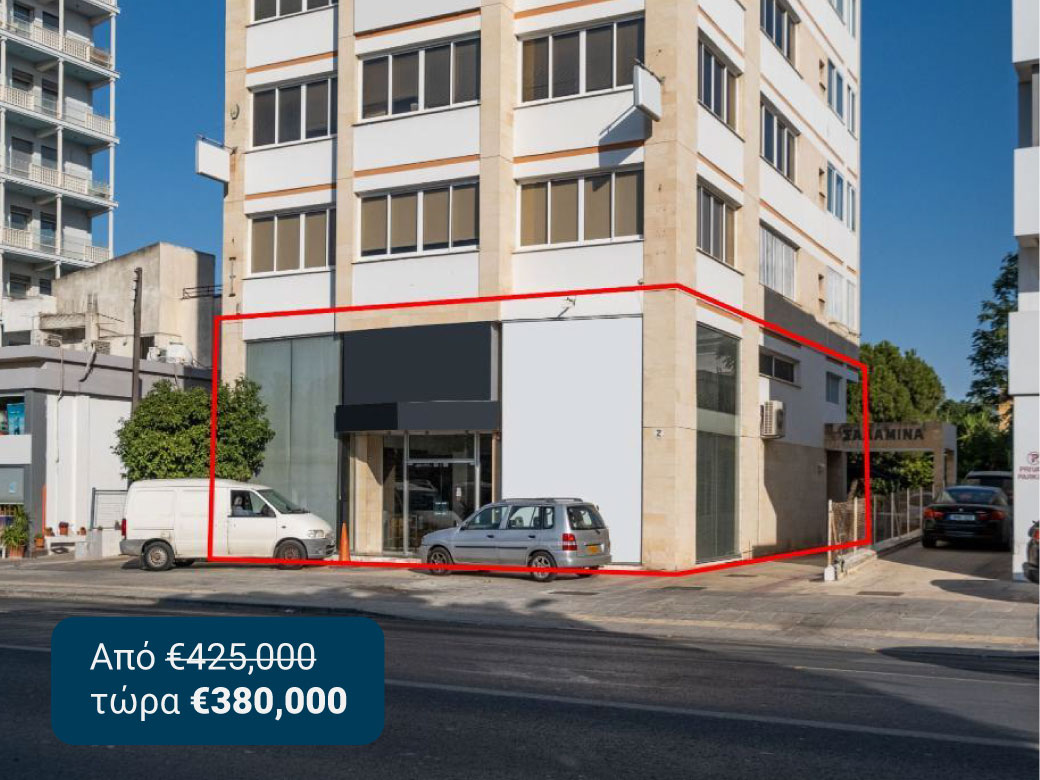 To ισόγειο κατάστημα βρίσκεται στην περιοχή Αγίου Αντωνίου, στη λεωφόρο Σαλαμίνος, και είναι μέρος ενός κτηρίου μικτής χρήσης.