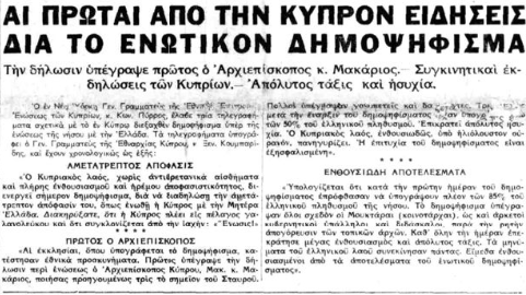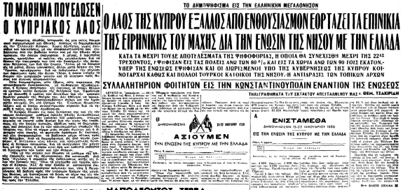 Συμπληρώνονται σήμερα 76 χρόνια από την επέτειο του Ενωτικού Δημοψηφίσματος. Το αίτημα της Ένωσης με την Ελλάδα είχε εδραιωθεί στη συνείδηση των Ελλήνων της Κύπρου ως κυρίαρχη εθνική συνείδηση, αρχικά από την Εκκλησία και ακολούθως με την υποστήριξη όλων των πολιτικών φορέων της Κύπρου, συμπεριλαμβανομένου και του ΑΚΕΛ. Όμως, η ελλαδική πρόσληψη του γεγονότος διαμορφώθηκε μέσα σε ένα πλαίσιο εθνικής ταύτισης με τον κυπριακό ελληνισμό, αλλά και σοβαρών περιορισμών που επέβαλλαν αυτοσυγκράτηση στην Αθήνα, αποτυπώνοντας τις αντιφάσεις της μετεμφυλιακής ελληνικής πραγματικότητας.